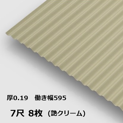 8枚単位 波板 7尺 艶クリーム 丸波0.19mm厚 幅650mm(有効幅595) 約2134mm 梱包重量21.8kg カラー亜鉛鉄板 塗装溶融めっき鋼板 トタン板