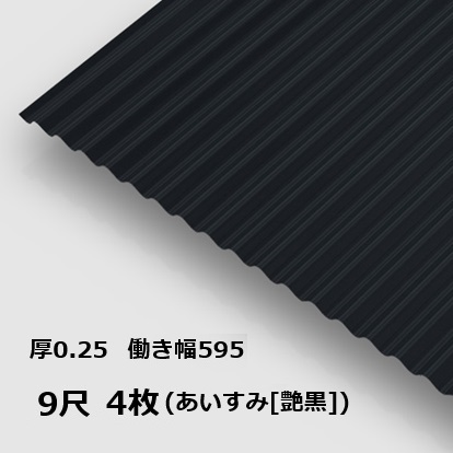 4枚単位 波板 9尺 藍墨(あいすみ) 丸波0.25mm厚 幅650mm(有効幅595) 約2743mm 梱包重量18kg カラー亜鉛鉄板 塗装溶融めっき鋼板 トタン板 艶黒 ブラック