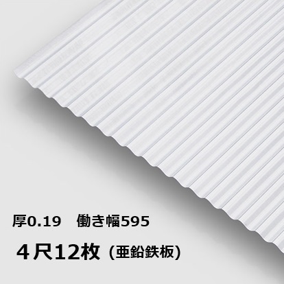 12枚単位 亜鉛鉄板 波板 4尺 丸波0.19mm厚 幅650mm(有効幅595) 約1219mm 梱包重量18.8kgトタン波板 銀色艶有ピカピカ シルバー色