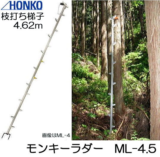 モンキーラダー ML-4.5 全長4.62m アルミ製 枝打はしご 3本連結 枝打ち梯子 (法人or 営業所引取) 個人宅配送不可 本宏製作所