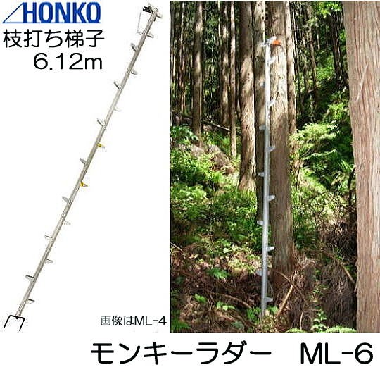 モンキーラダー ML-6 全長6.12m アルミ製 枝打はしご 3本連結 枝打ち梯子 (法人or 営業所引取) 個人宅配送不可 本宏製作所