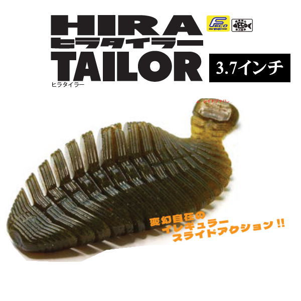 フラットボディのソフトベイトが有効である要素のひとつ「強い水押し」とそれに伴う「自発的なイレギュラースライドアクション」。ヒラタイラは、それらに複雑さと乱水流による艶めかしさをプラスするために、深めのスリットを入れたブロック状の蛇腹ボディに設計。ボディに掛かるウォータープレッシャーの強弱によって全方位にうごめく艶めかしさをもたらしています。