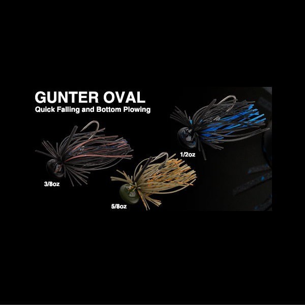 釣れるフットボール型ジグの重要なファクターである俊敏なフォールと、ボトムの砂を外へと押しやる圧力系ホバーフォールを最大限発揮させるために作られた、新設計の後方重心型ヘッドを特長とする「ガンターオーバル」。 さらに徹底したスナッグレス性能を追及し、ナローゲイプ&ロングシャンクフックを特別デザイン。寝かせたブラシガードと共にフットボール型とは思えないほどのすり抜けを実現。 ガンタージグシリーズの特長であるバルキートレーラーの装着も視野に入れたバランスは、通常のジグならばヘッド先端から着底してしまうような抵抗の強いトレーラーを使ってもしっかりと理想のフォール&着底を繰り返します。 まさに最高峰のフットボール型ジグといって過言ではない仕上がりになっているのが「ガンターオーバル」です。