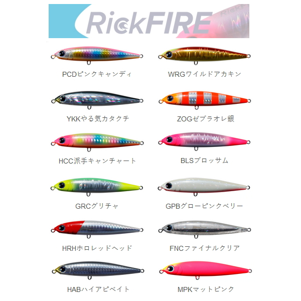 飛距離を追い求めた高比重ボディーと浮遊感という、相反する要素のバランスを追求したのがリックファイアです。ハンドルにトルクがかかった瞬間から動き出す程レスポンスが良く、リーリング感覚とアクションが一体となったような感覚で使用出来ます。シンキングペンシルは手元に感覚が伝わりにくい。だからこそイメージと一体感のあるリックファイアは信頼して使える武器となるのです。
