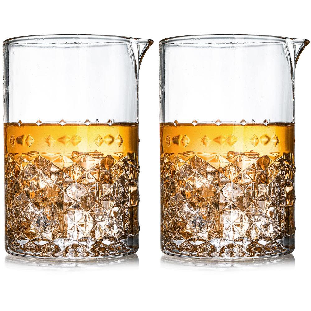 | 商品コメント | Package: Include 2 pack cocktail mixing glasses, capacity is 25oz, the mixing glass is an elegant and practical solution when your cocktail calls to be stirred instead of shaken. Premium Glass: SOUJOY Mixing glass is made of handcrafted lead-free glass, it is seamless and with a heavy bottom for stability, will not tip over while mixing. Easy to Use: Our stirring glass has a wide mouth and a beaker like spout, it is narrow sized making it easy to strain and smooth to pour. Diamond Pattern Design: The unique diamond pattern design makes it easy to grip and adds some serious class to your home bar. You'll love the elegance, quality, and durability of this cocktail stirrer set. Multi Purpose: Our elegant cocktail pitcher is ideal for home or professional bartender, can create Old Fashioned, Manhattan or Martini and many other classic and creative cocktails. Also a perfect gift for housewarming. |