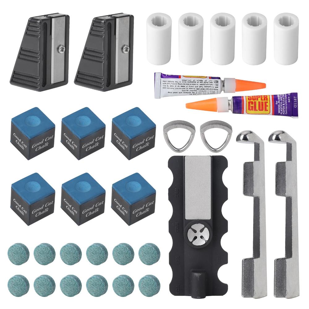 | 商品名 | Oztwel 30個 プールキュー修理キット:1 5in1 プールキューチップ修理ツール 2 プールキューチップクランプ 12 ビリヤードキューチップ 5フェルール 6 チョークキューブ 2 キューチップ トリマー 2 キューチップグルー(PCRK30) |