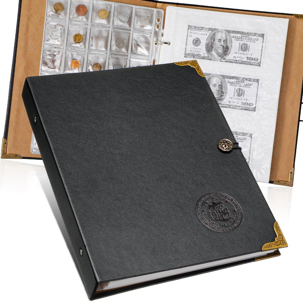 | 商品コメント | Large capacity: this coin paper currency album includes 5 coin collection pages and 40 currency pages, which can hold 150 coins and 240 banknotes Size detail: the overall size of this coin banknote collection book is 12 x 9.65 x 1.57 inches/ 30.5 x 24.5 x 4 cm, the currency pocket is 3.66 x 7.09 inches/ 9.3 x 18 cm and the coin pocket measures 1.46 x 1.57 inches/ 3.7 x 4 cm Quality material: coin collection supply has a PU leather cover, which is resistant to abrasion and has good texture; Built-in transparent PVC pages, which are no smell, non-toxic, comfortable to touch and protect coins and currencies well; The coin collecting album book will not become brittle or hard even at low temperatures Store and protect: currency storage album is waterproof and moisture-proof, the coin storage pocket has a baffle to prevent coin from falling and the concave-convex honeycomb-layer can prevent banknotes from sticking; Nice for store and protect precious ?coins and paper currency Wide range of uses: this collecting holder album is suitable for collecting banknotes, tokens, medals, paper currency, coin and stamps, etc.; For collectors who like stamp collecting and commemorative coins, this is a meaningful gift |