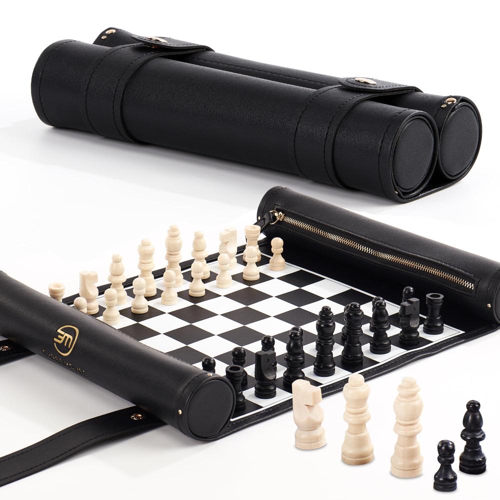 | 商品名 | ThreeMoves ロールアップチェスセット - 11インチ 折りたたみ式レザーチェスマット 木製チェスピース付き - ポータブルトラベルチェスセット ストラップ付き - 飛行機キャンプなどに最適なチェスゲーム (ブラック/ホワイト) |