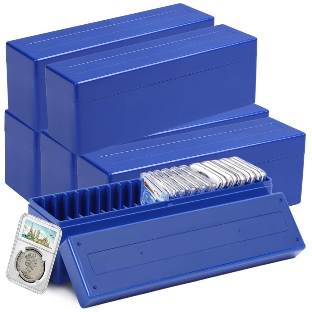 | 商品コメント | Comprehensive Coin Collection Organizing System our six-piece coin slab storage box set revolutionizes the way you organize your coin collection. each box holds 20 slab coin holders, allowing you to categorize, display, and protect up to 120 pragmatically and stylishly. designed for both amateur and seasoned collectors, these boxes help maintain your collection's pristine condition while easily accessible. Universal Compatibility for Coin Slabs tailored to fit coin slabs up to dimensions 2.56 x 3.35 x 0.4 inches (l x w x h), our versatile boxes integrate seamlessly with most commonly used coin slab cases, including ngc, pcgs, pmg, and certified-style holders. this ensures that your diverse coin collection can be stored conveniently and securely under a unified system. Compact, Clutter-Free Storage Solution maximize your storage space with our precisely dimensioned coin holder storage boxes, measuring 10.43 x 2.76 x 3.54 inches each. these boxes are engineered to fit snugly in drawers, be placed orderly on desktops, or gracefully displayed on shelves, thus enhancing your space utilization and keeping your coin collection organized in a minimal footprint. Robustly Built with High-End Plastic each coin slab storage box is meticulously constructed from durable, thick plastic to provide substantial protection against physical impacts. the sleek, glossy exterior not only contributes to a comfortable handling experience but also adds a touch of elegance to your coin display, enhancing the overall aesthetic of your collection. Enhanced Security with Reliable Snap Lid secure your valuable coin collection with our boxes that come with a sturdy snap lid. this reliable design prevents the lids from accidentally opening, even when turned upside down, ensuring your remain safe and intact at all times. should you have any concerns, our customer support is readily available to assist you with dedicated service. |