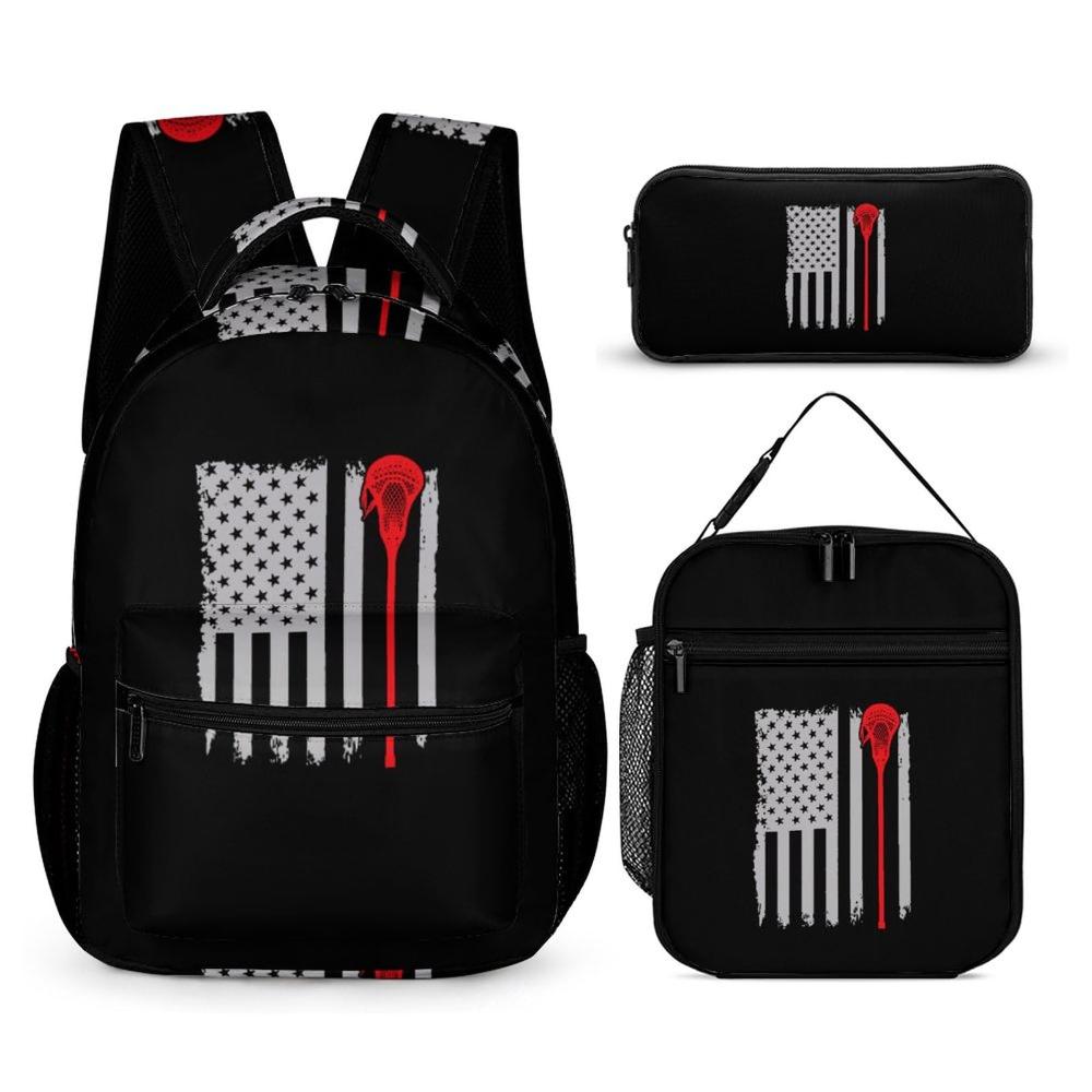 | 商品名 | Merican Flag Lacrosse 3 Pcs Backpack Set Portable Lunch Bag Pencil Pouch for Office |