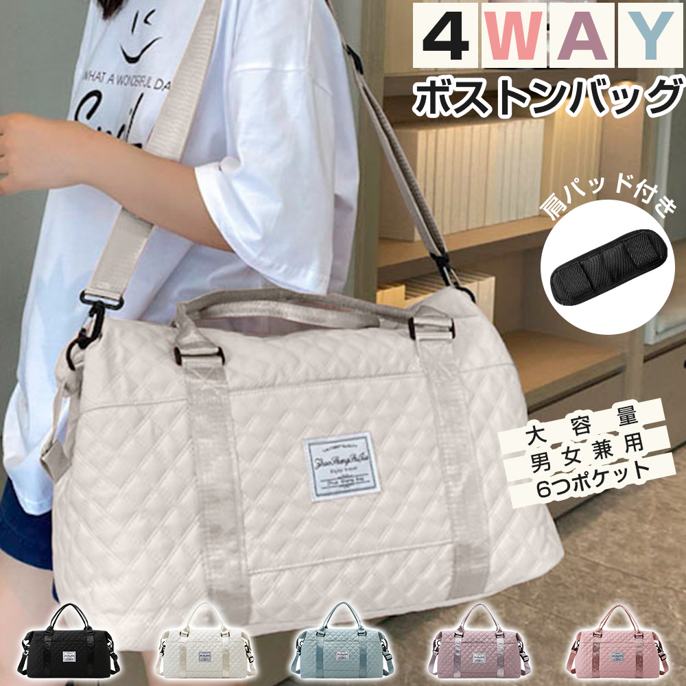 【肩パッド付き】ボストンバッグ レディース メンズ 6つポケット 4WAY 旅行バッグ 大容量 旅行カバン キャリーオンバッグ スポーツバッグ 乾湿分離 機内持ち込み