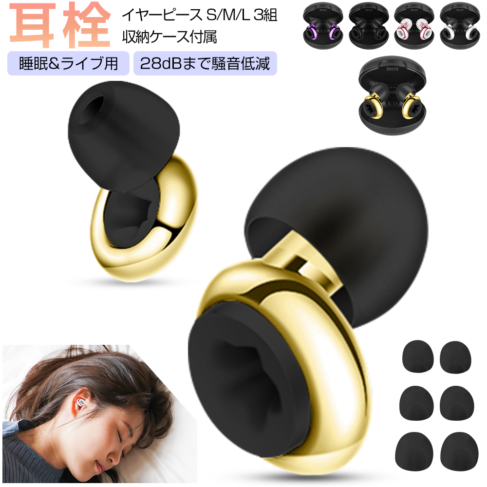耳栓 睡眠用 イヤープラグ 遮音 みみせん ライブ 28dB低減 収納ケース付き S/M/L イヤーチップ 3セット 防音 ノイズキャンセリング 聴覚過敏 シリコン 水洗い