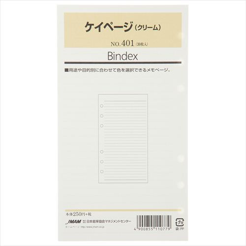[Bindex] バイブルサイズ ケイページ 30枚入り(クリーム) 401