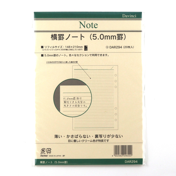 [Davinci] 横罫ノート (5.0mm罫) クリーム 20枚入り A5サイズ 148×210mm