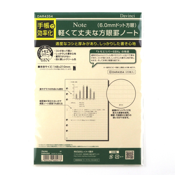 [Davinci] 方眼ノート (6.0mmドット方眼) クリーム 20枚入り A5サイズ 148×210mm