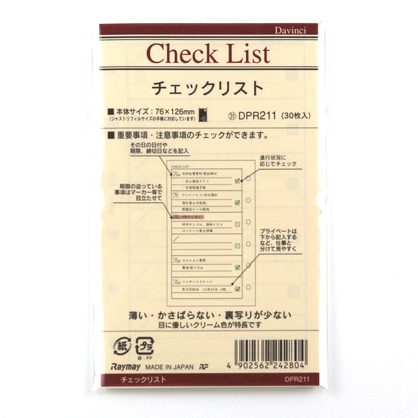 [Davinci] チェックリスト クリーム 30枚入り ポケットサイズ