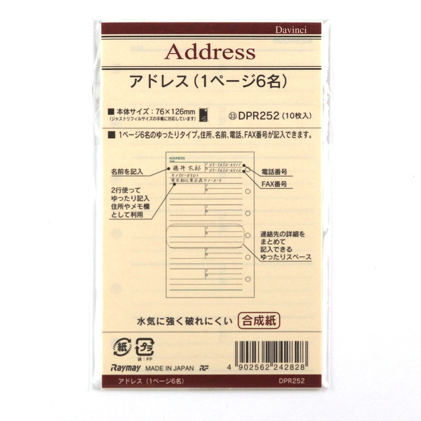 [Davinci] アドレス (1ページ6名) 合成紙 10枚入り ポケットサイズ 76×126mm