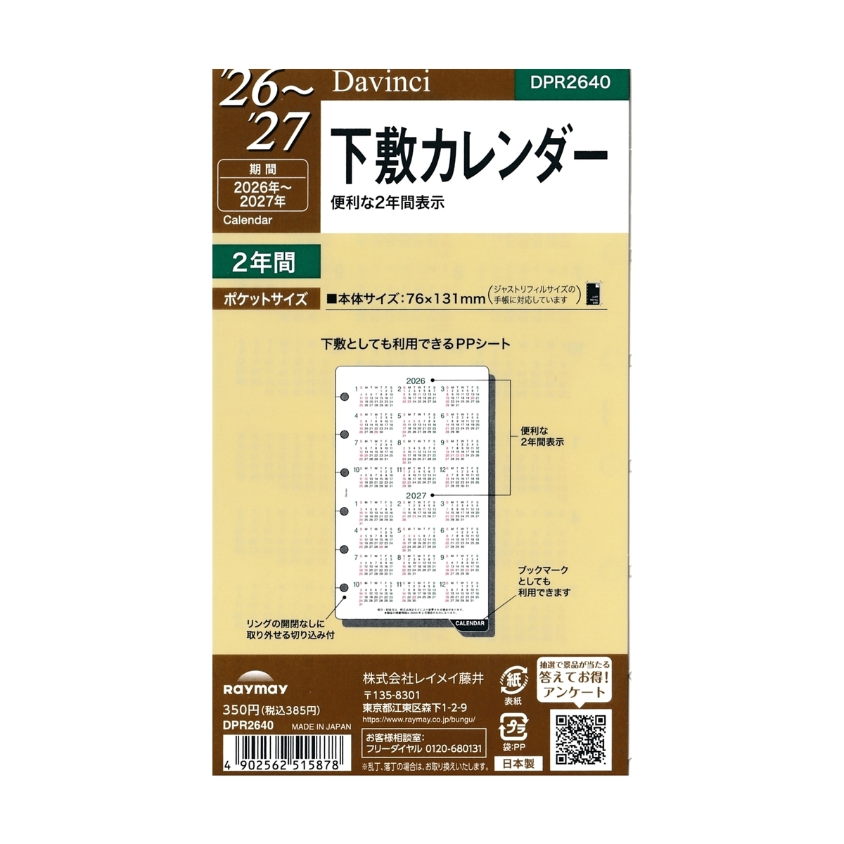 [Davinci] 2026〜2026年 ポケットサイズ下敷きカレンダー DPR2640
