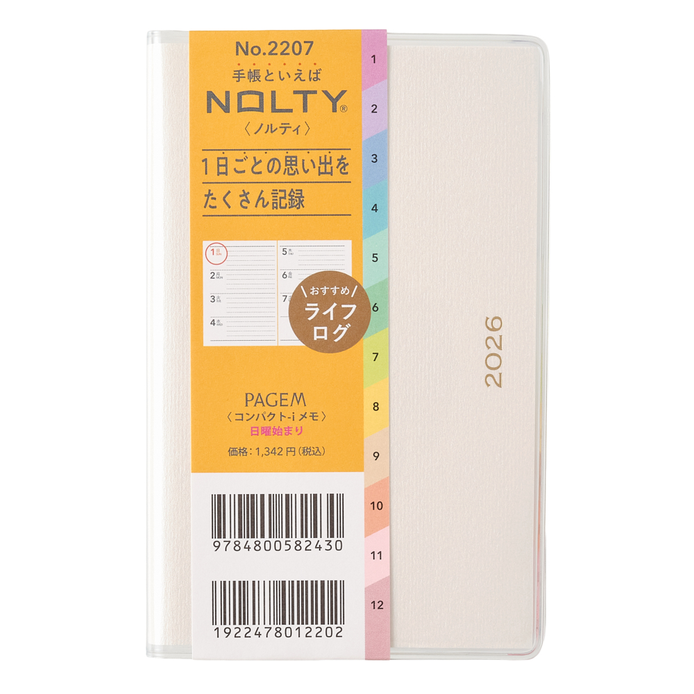 PAGEM 2026年1月始まり ペイジェムウィークリーコンパクト-iメモ日曜(ホワイト) 2207
