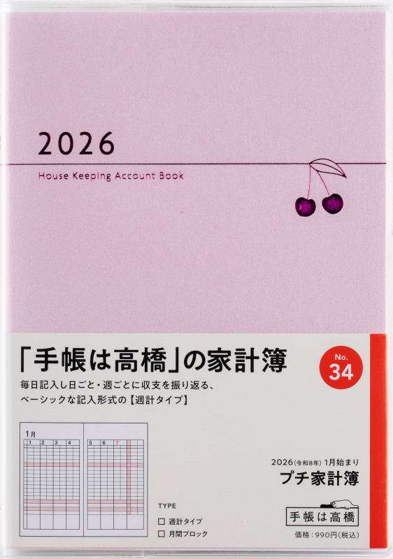 高橋書店 2026年1月始まり プチ家計簿 No.34