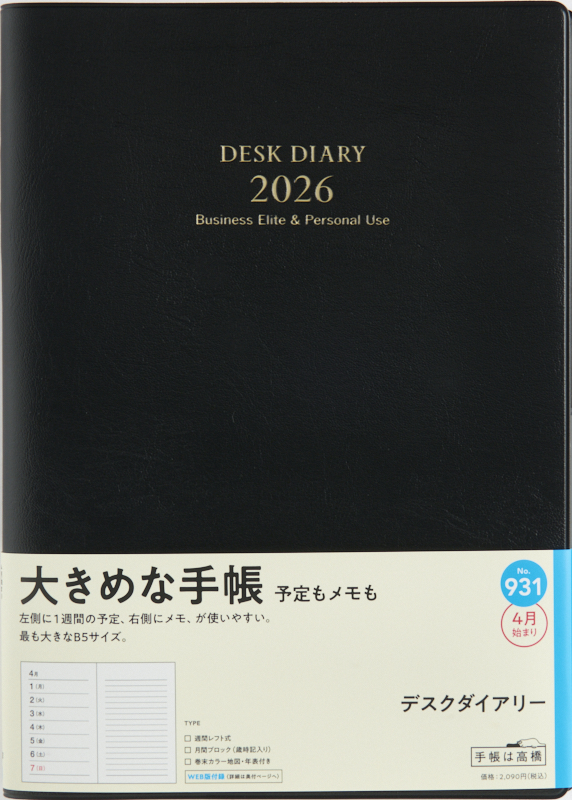[高橋書店] 2026年4月始まりダイアリー No.931 デスクダイアリー