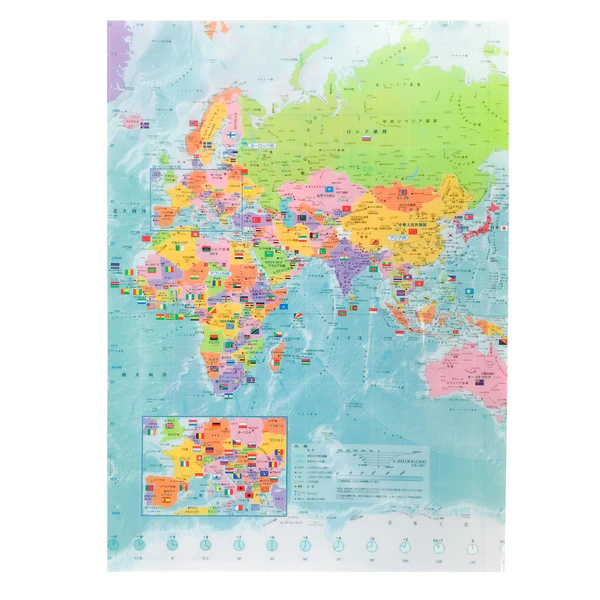 世界地図に国旗が掲載された学習に役立つクリアファイルです。