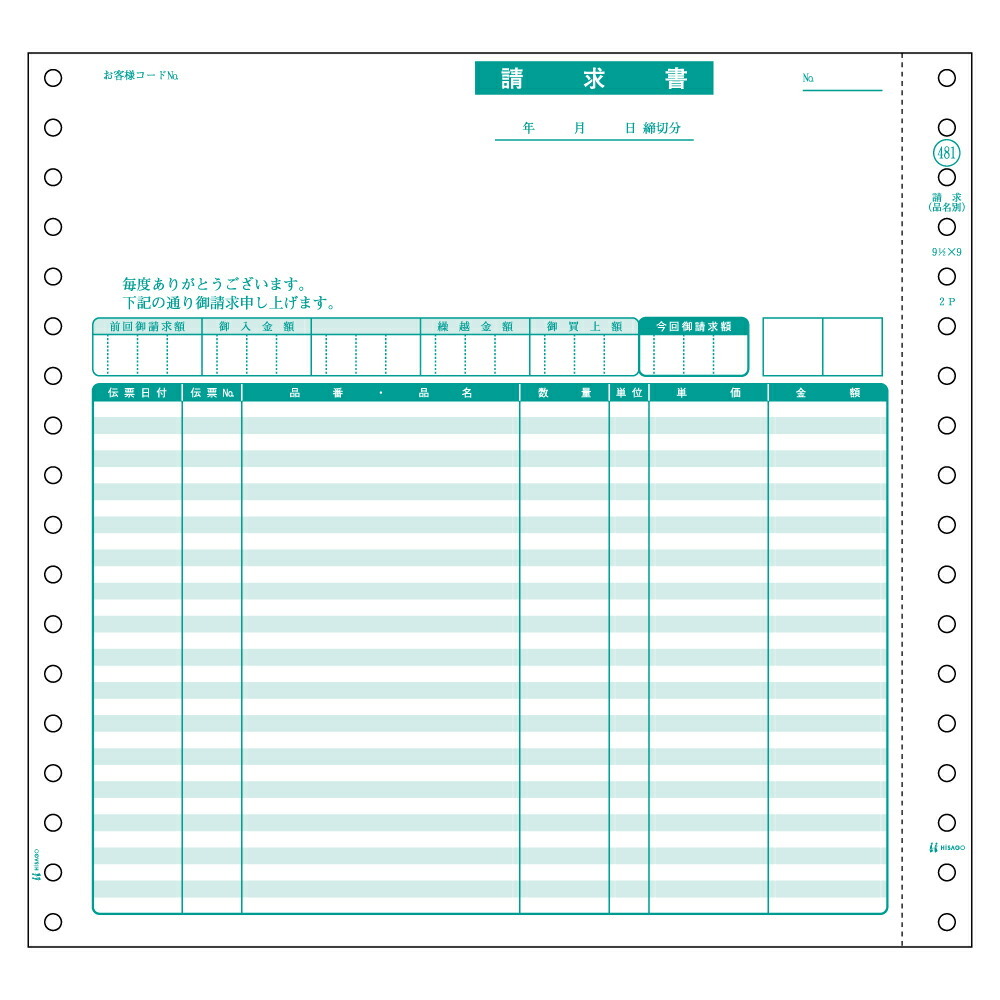 ヒサゴ SB481 請求書(品名別)(1000セット入り)(5セット)