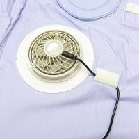 ウェアに装着したファンが回転し、ウェアに送風。過酷な真夏のグランドに涼しい風を送るウェアです。