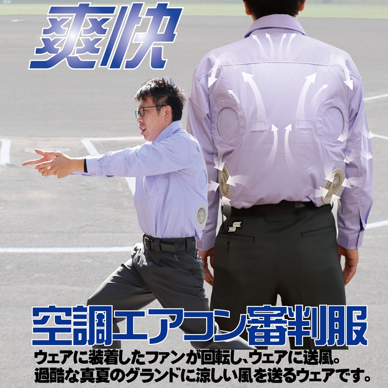 夏の野球の審判員の為に、快適に審判ができるように生み出した、空調エアコン野球審判服。