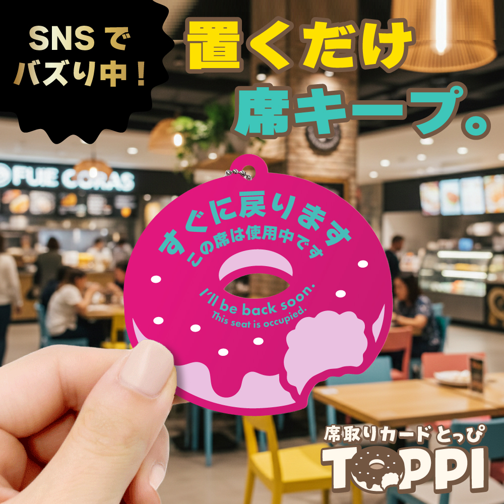 席取りカード TOPPI(とっぴ) ドーナツ| プレート 席キープ 確保 席札 フードコート カフェ 離席 オフィス コワーキング 防水 便利 アイテム グッズ 送料無料