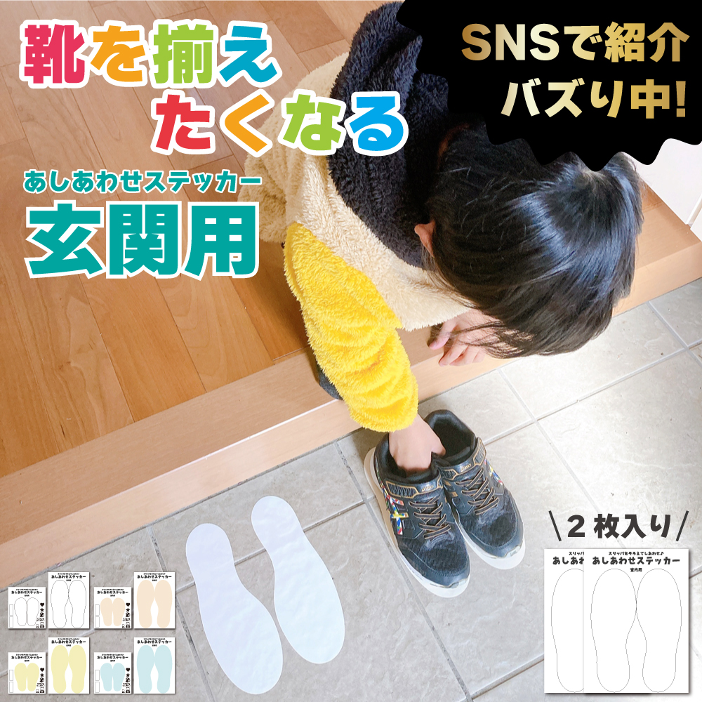 【 2枚セット 】あしあわせ ステッカー ( 玄関用 ) 足型 足形 玄関 足 あし 靴 靴合わせ 足あと 足跡 くつ 子供 赤ちゃん 幼稚園 保育園 小学校 工場