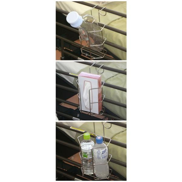 ・尿器だけでなく、ベッドガードに掛けてペットボトルやテッシュBOXの収納にも便利で、ベッド回りがスッキリします(ペットボトルは通常500mLタイプが2本収まります)。