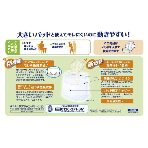 大きいパッドでもパンツの立体ギャザーの中にぴったりおさまり、パッドのはみだしや折れ・ヨレを防止。