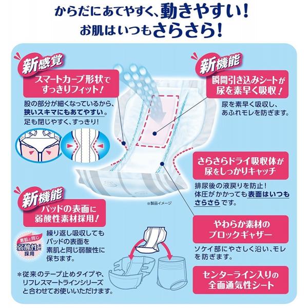 排尿後の液戻りを防止し、体圧がかかっても表面はいつもさらさら!繰り返し吸収しても、パッドの表面を素肌と同じ弱酸性に保ちます。