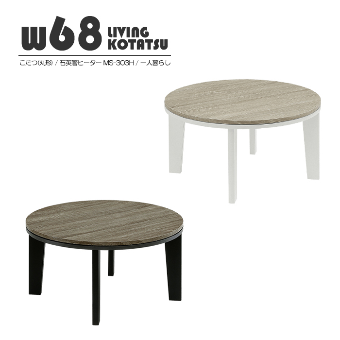 こたつ 幅68cm 円形 コタツ 丸形 幅68 奥行68 68×68 ロータイプ 石英管ヒーター MS-303H こたつ単品 センターテーブル リビングテーブル 座卓 ローテーブル
