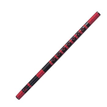 カシューで黒く塗りあげ、赤ビニールをまいた色鮮やかな篠笛です。