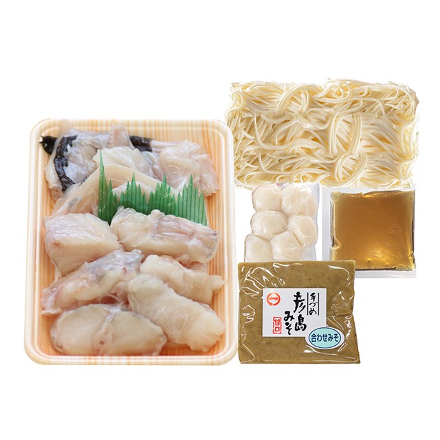 あんこう350g、あんこうつみれ60g、冷凍うどん180g、彦島みそ200g、鍋だし55g