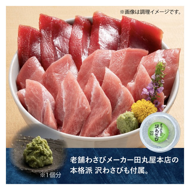 わさび漬けで有名な田丸屋本店が製造している「すりおろし沢わさび」も付いています。本わさびを使用した甘みのあるわさびで、中トロ・赤身の味を引き立てます。