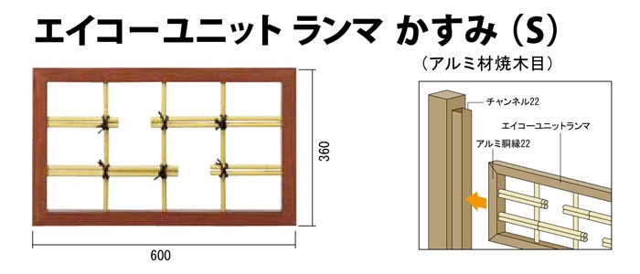 ユニットランマかすみ(S) イエロー (アルミ材焼木目)W600xH360mm