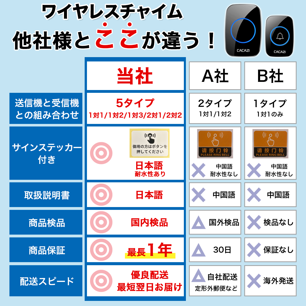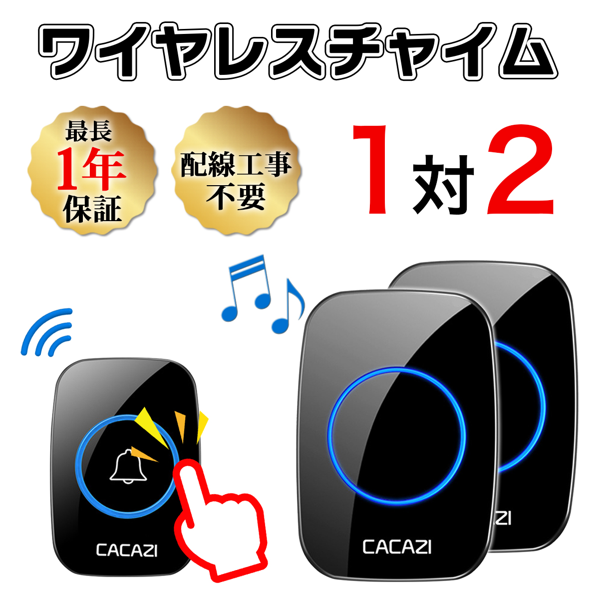 インターホン チャイム ワイヤレスチャイム ピンポン おすすめ 介護 玄関 ドアホン 送信機1 受信機2 無線
