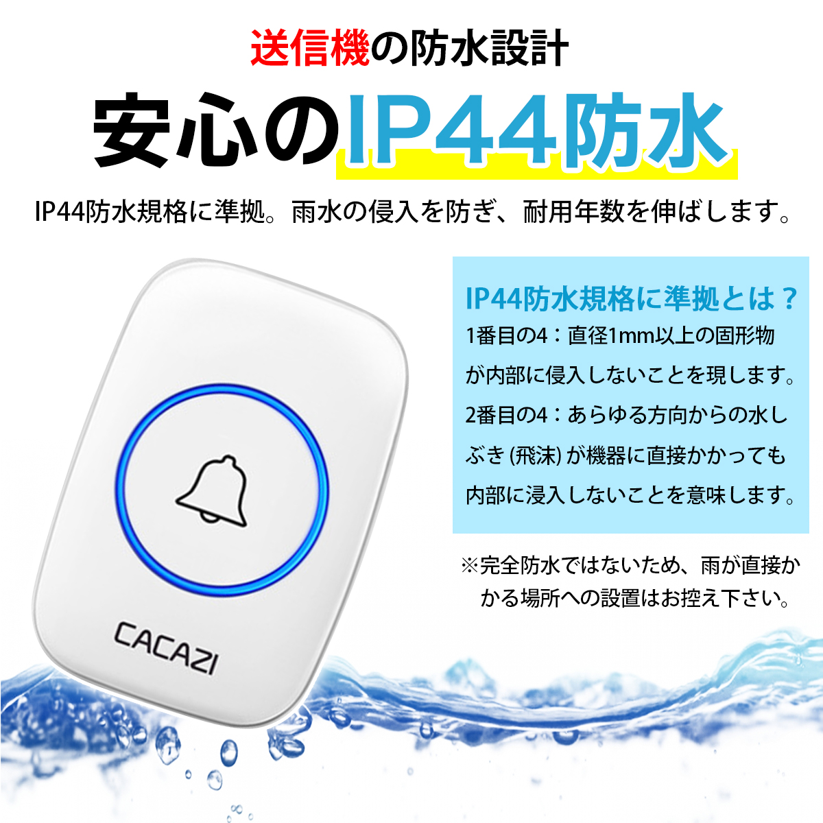 押しボタン送信機は防滴仕様なので、防水・防塵性能が優れており、屋外でも使用でき、雨の日でも心配ありません。