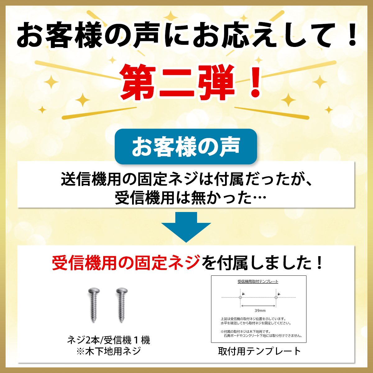 取付らくらく、配線工事不要のワイヤレスチャイム!