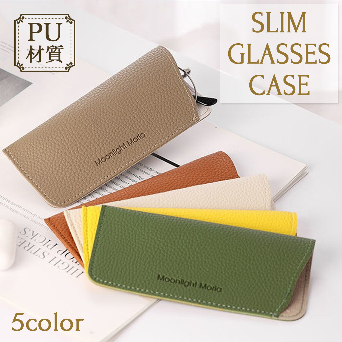 メガネケースは、水や汚れに強いPUレザー素材を採用しています。機能性とデザイン性を兼ね備えた一品です。毎日の使い込みでも品質を保ち、長くご利用いただけます。