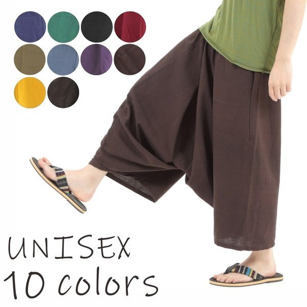 ガウチョパンツ 無地 袴パンツ ワイドパンツ メンズ レディース エスニック サルエルパンツ スカンツ タイパンツ G