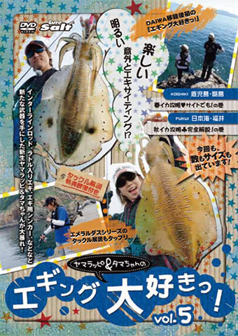エギング界に衝撃をもたらした、山田ヒロヒト&野村珠弥のコンビが贈る、最強・最笑のDVD「エギング大好きっ!」の第五弾。