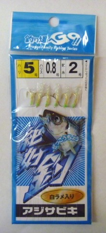 アジサビキ 絶好釣 白ラメ 5号 ハリス0.8号 幹糸2号 6本針 マルシン ドラゴン