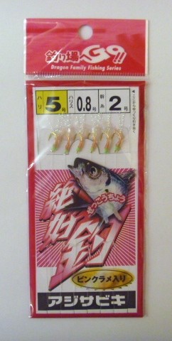 アジサビキ 絶好釣 ピンクラメ 5号 ハリス0.8号 幹糸2号 6本針 マルシン ドラゴン