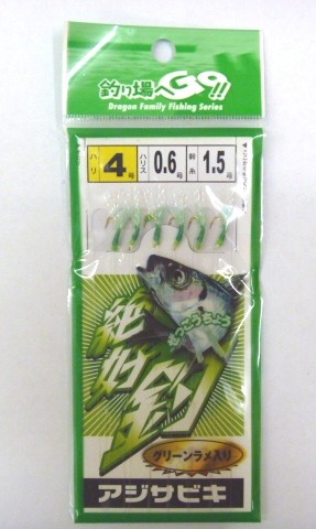 アジサビキ 絶好釣 グリーンラメ 4号 ハリス0.6号 幹糸1.5号 6本針 マルシン ドラゴン