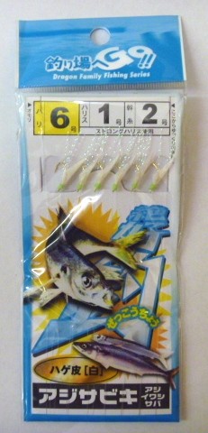 アジサビキ 絶好釣 ハゲ皮(白) 6号 ハリス1号 幹糸2号 6本針 マルシン ドラゴン