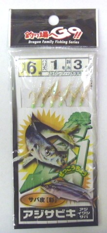 アジサビキ 絶好釣 サバ皮 彩 6号 ハリス1号 幹糸3号 6本針 マルシン ドラゴン